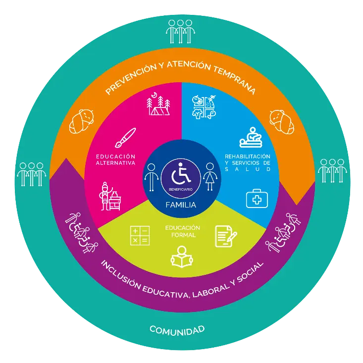 Acompañamos a bebés, niñas, niños, adolescentes y personas adultas, impulsando su desarrollo y bienestar. Transformamos la vida de nuestra población beneficiaria a través de un modelo de Atención Integral que incluye Rehabilitación y Servicios de Salud, así como Educación Integral.